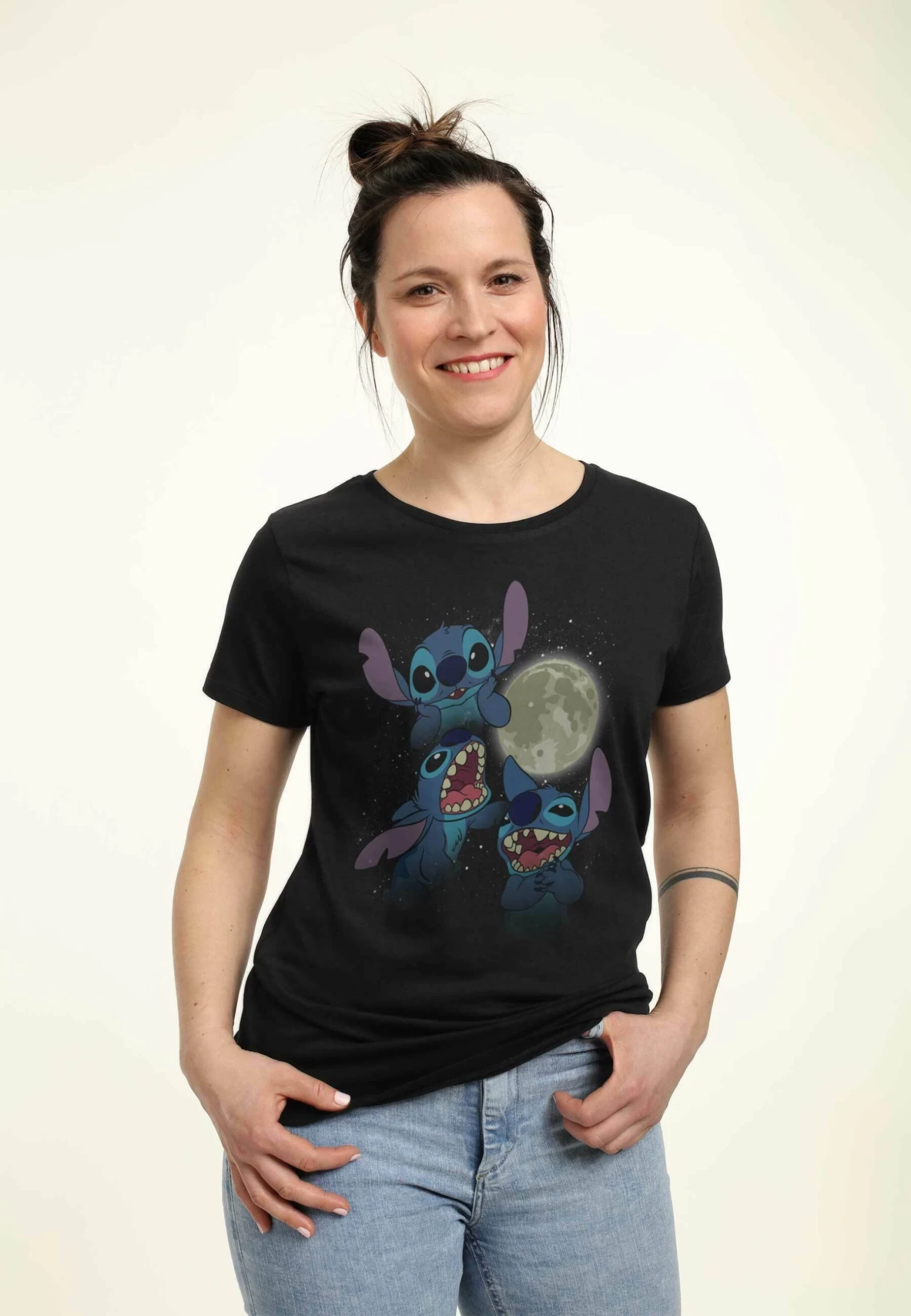 Disney LiloStitch Three Stitch Moon – T-Shirt Print – Black